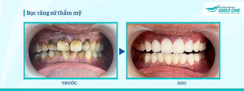 Hình ảnh khách hàng trước và sau khi làm răng sứ tại Nha khoa Smile One