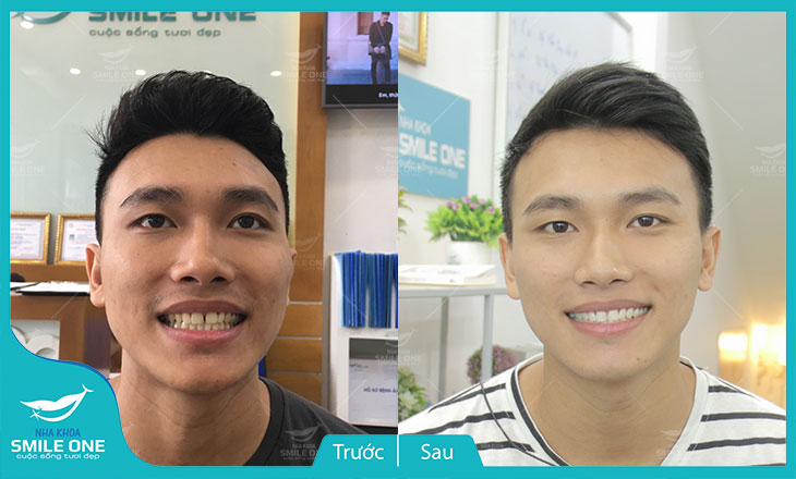 Hình ảnh anh Chiến trước và sau khi chỉnh nha Invisalign tại Nha khoa Smile One.