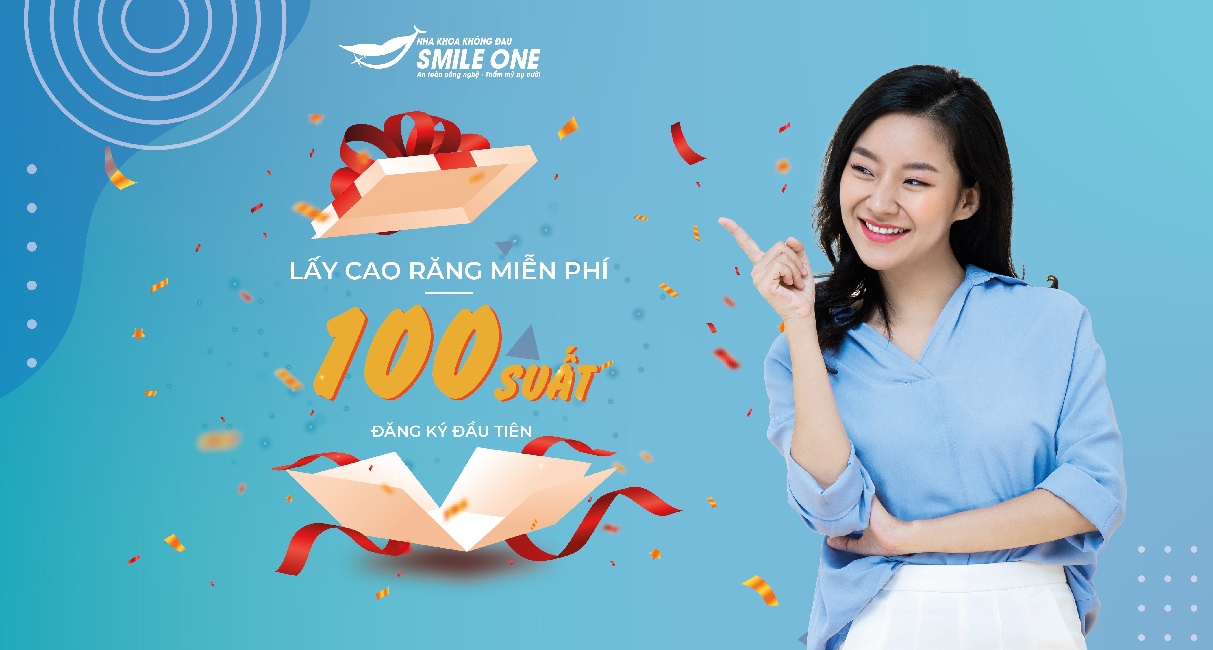 Nha khoa Smile One dành tặng 100 suất đăng ký miễn phí lấy cao răng trong tháng 7 với mong muốn đem lại dịch vụ chăm sóc sức khỏe răng miệng tốt nhất cho các khách hàng. Nhanh tay đăng ký để có một hàm răng khỏe mạnh nhé !