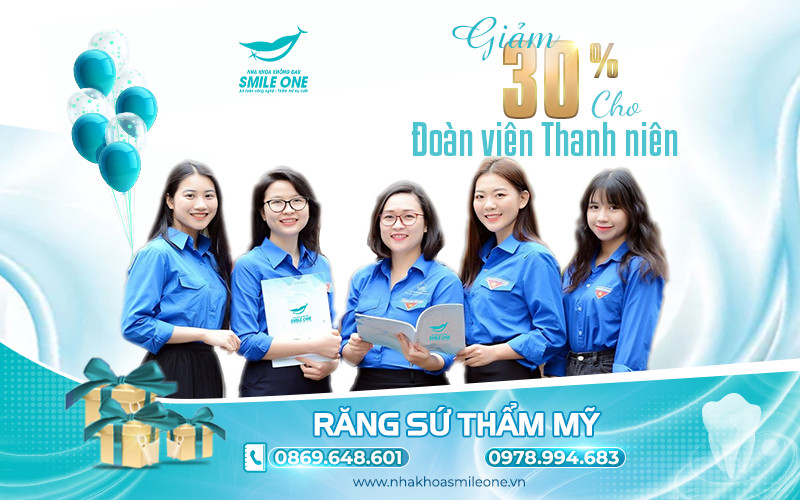 Hòa trong không khí tuổi trẻ cả nước, kỷ niệm 92 năm ngày thành lập Đoàn TNCS Hồ Chí Minh, Smile One dành tặng ưu đãi 30% đối với tất cả các dịch vụ lớn nhỏ tại nha khoa.