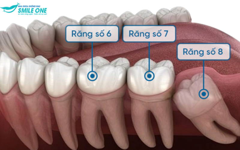 1. Răng số 6 ở vị trí nào?